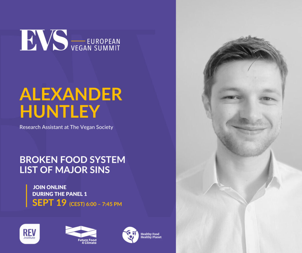 Alexander Huntley – Alexander dołączył do The Vegan Society w 2022 roku po ukończeniu studiów magisterskich z zakresu polityki konfliktów, praw i sprawiedliwości w School of Oriental and African Studies (SOAS). Jako asystent ds. badań jest odpowiedzialny za koordynację sieci badawczych Towarzystwa, społeczności wegańskich badaczy akademickich. Jest współautorem kilku publikacji na tematy związane z weganizmem, w tym raportu politycznego 2023 Catering for Everyone, dotyczącego wegańskiego cateringu w brytyjskim sektorze publicznym.