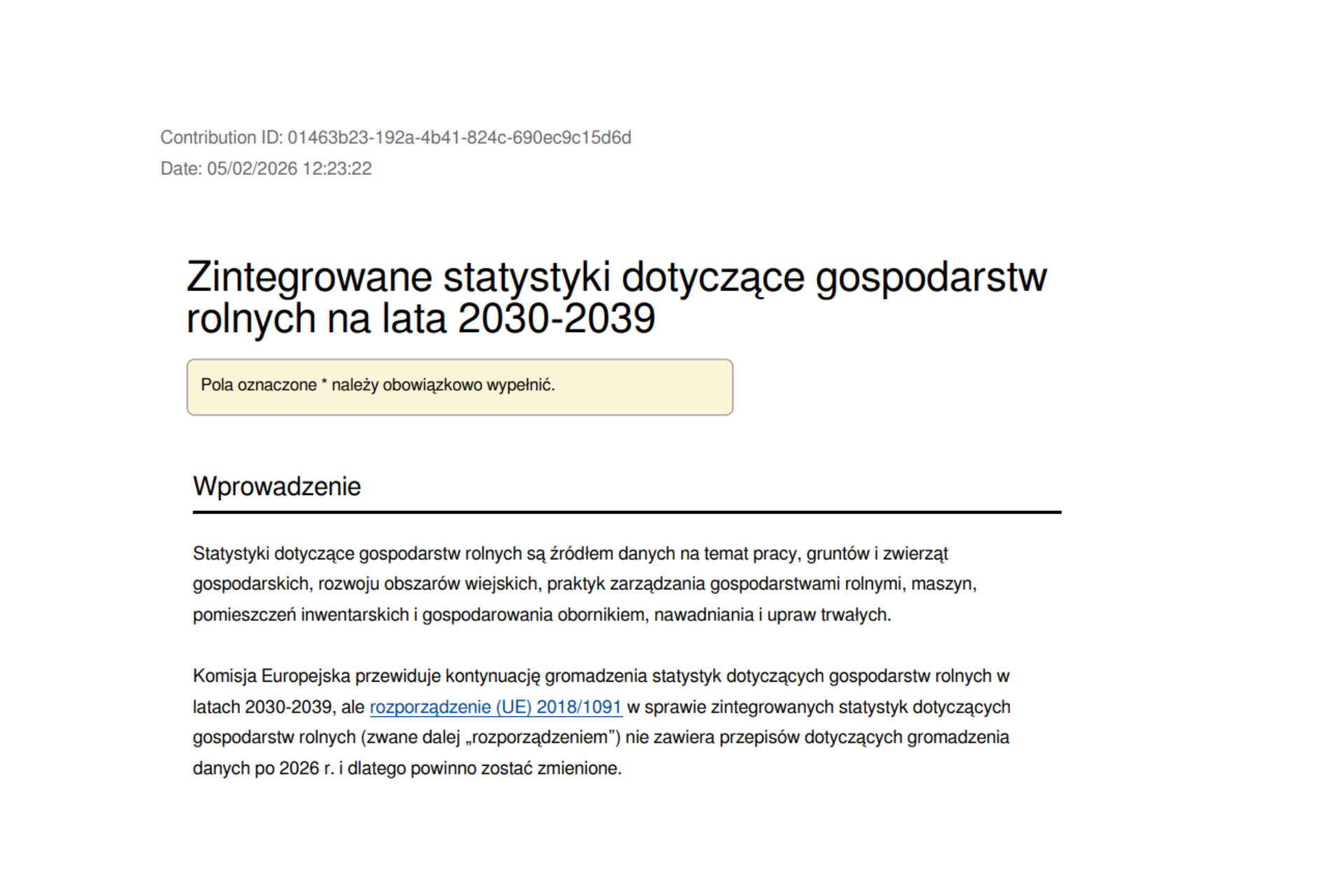 Komisja Europejska przedstawiła do konsultacji publicznych projekt zmiany rozporządzenia (UE) 2018/1091 w sprawie zintegrowanych statystyk gospodarstw rolnych, którego celem jest umożliwienie dalszego gromadzenia danych w latach 2030–2039 oraz dostosowanie zakresu i metodologii statystyk do nowych priorytetów politycznych UE. Green REV Institute zajął stanowisko w tej sprawie, wskazując na istotne braki w obecnym systemie statystycznym oraz jego ograniczoną przydatność dla kształtowania skutecznych polityk publicznych w obszarach środowiska, klimatu, zdrowia publicznego i transformacji systemów żywnościowych.