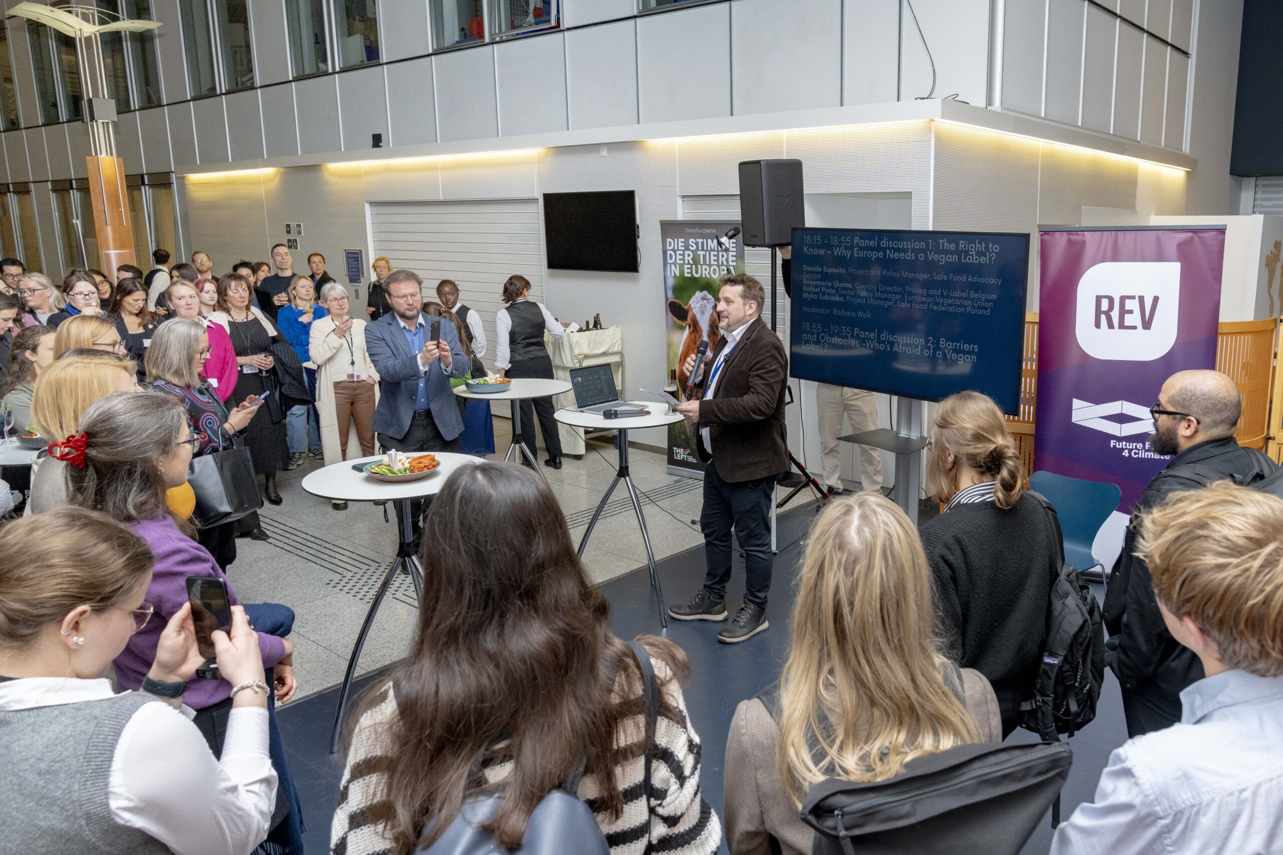 28 stycznia 2026 r. w Parlamencie Europejskim w Brukseli, polski think-tank, Green REV Institute, zorganizował we współpracy z biurem europosła Sebastiana Everdinga wydarzenie „Label the Future: Europe Goes Vegan”. Spotkanie odbyło się podczas trwającej debaty na temat przyszłości żywności i rolnictwa w Europie, która coraz częściej naznaczona jest polaryzacją, dezinformacją oraz konfliktami kulturowymi wokół sposobów produkcji i konsumpcji żywności. Wydarzenie poświęcone było idei ustandaryzowanego i ogólnoeuropejskiego oznakowania wegańskiego jako gwarancji przejrzystości, prawa do informacji oraz ochrony osób konsumenckich w Unii Europejskiej, a także temu, w jaki sposób zharmonizowane podejście mogłoby wspierać budowę bardziej zrównoważonego systemu żywnościowego.
