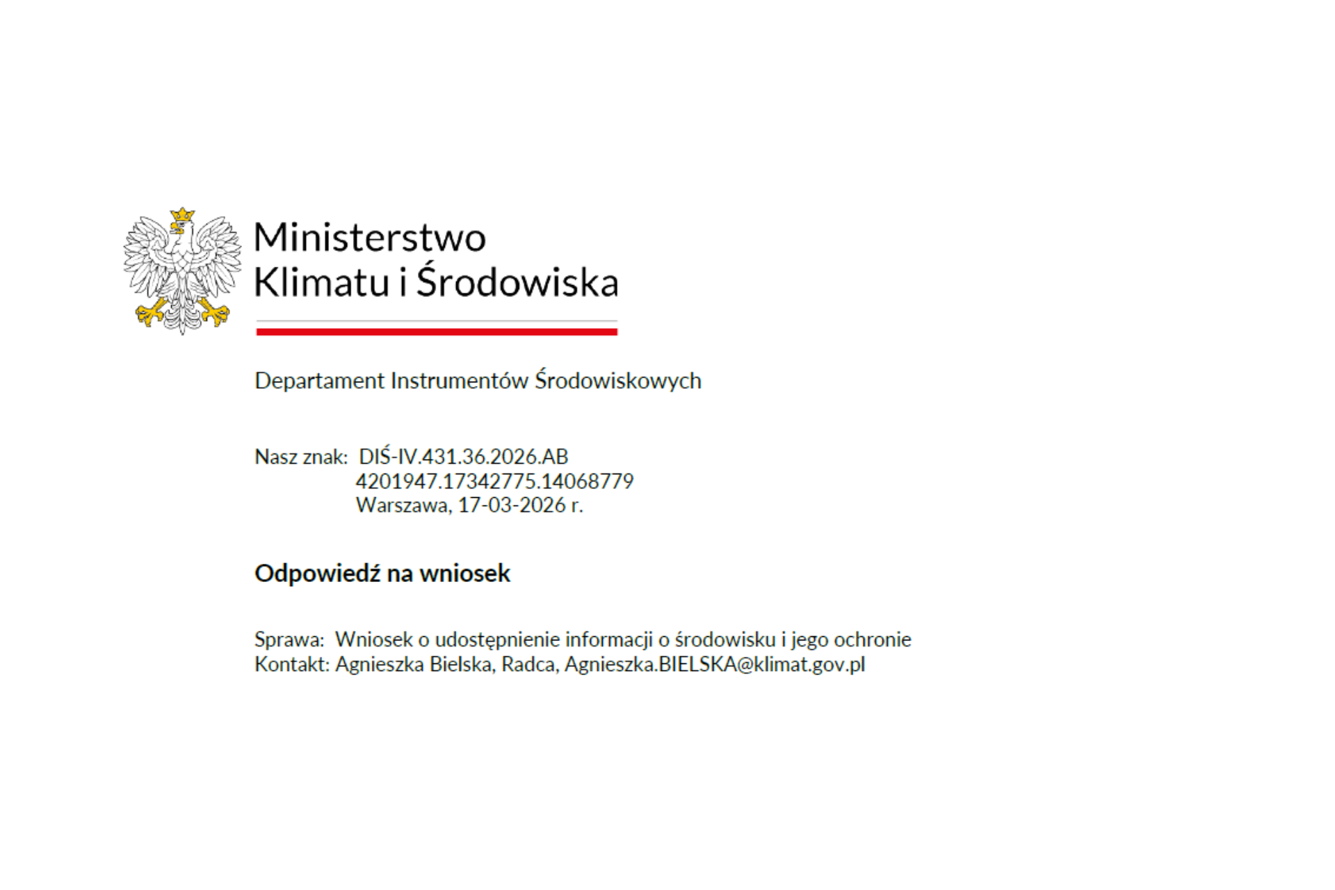 Green REV Institute wystąpiły do Ministerstwa Klimatu i Środowiska z wnioskiem o udostępnienie informacji dotyczących rozwoju sektora biogazowni w Polsce w latach 2020–2025, ze szczególnym uwzględnieniem ich wpływu na środowisko, klimat oraz społeczności lokalne. Wniosek obejmował m.in. kwestie analiz środowiskowych, konsultacji społecznych, monitoringu oddziaływania instalacji oraz powiązań rozwoju biogazu z polityką klimatyczną i rolną.