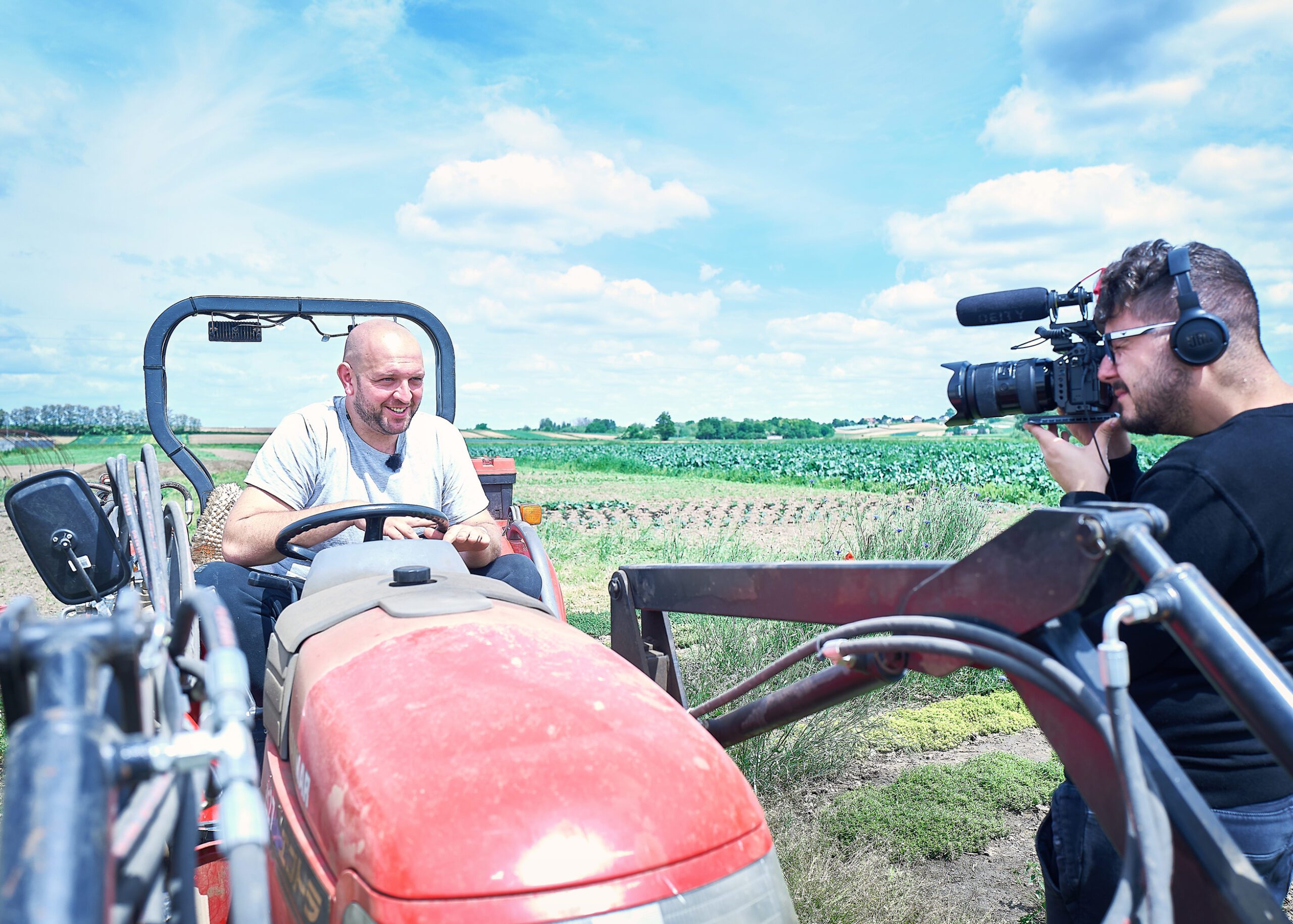 Na zdjęciu: Edgar Latała, właściciel gospodarstwa edukacyjno-ekologicznego „Chodź na pole” oraz Tomasz Kiełbasa, reżyser filmu „To tylko jedzenie?”.